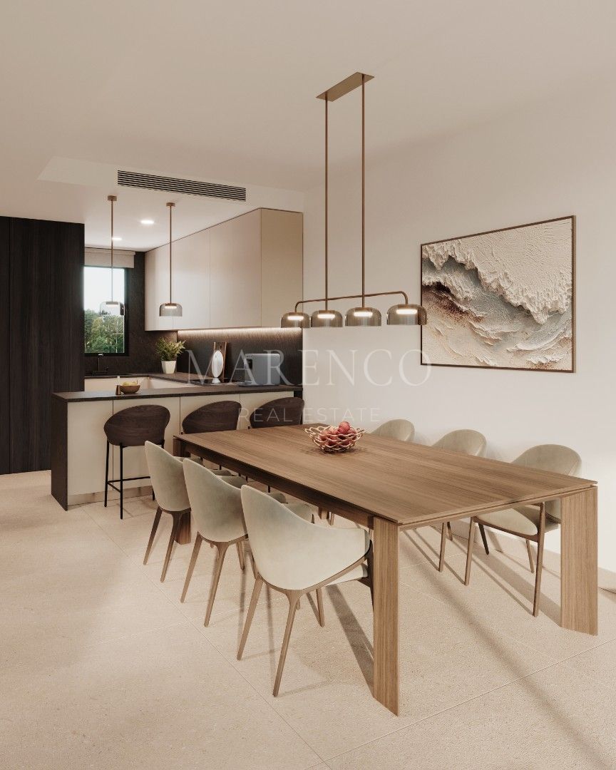De townhouse heeft een ruime indeling met 3 slaapkamers en 3 badkamers, elk ontworpen met de grootste aandacht voor detail. De open woonkamer sluit naadloos aan op de buitenruimte, waardoor het de perfecte plek is om te entertainen of gewoon te ontspannen. De volledig uitgeruste keuken is voorzien van moderne apparatuur, terwijl de master suite een privé toevluchtsoord biedt met een eigen badkamer en toegang tot een terras, perfect om te genieten van het mediterrane klimaat.