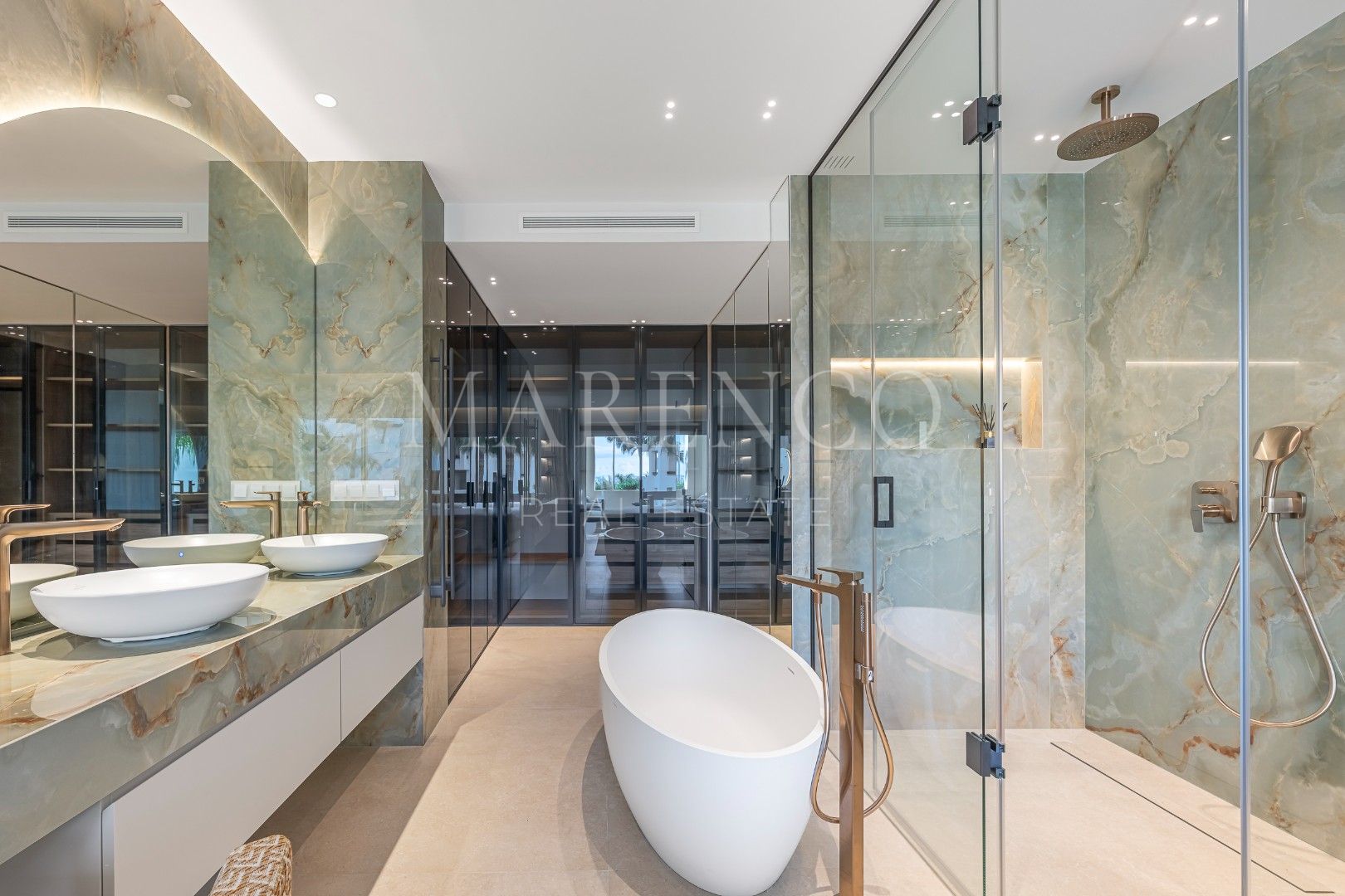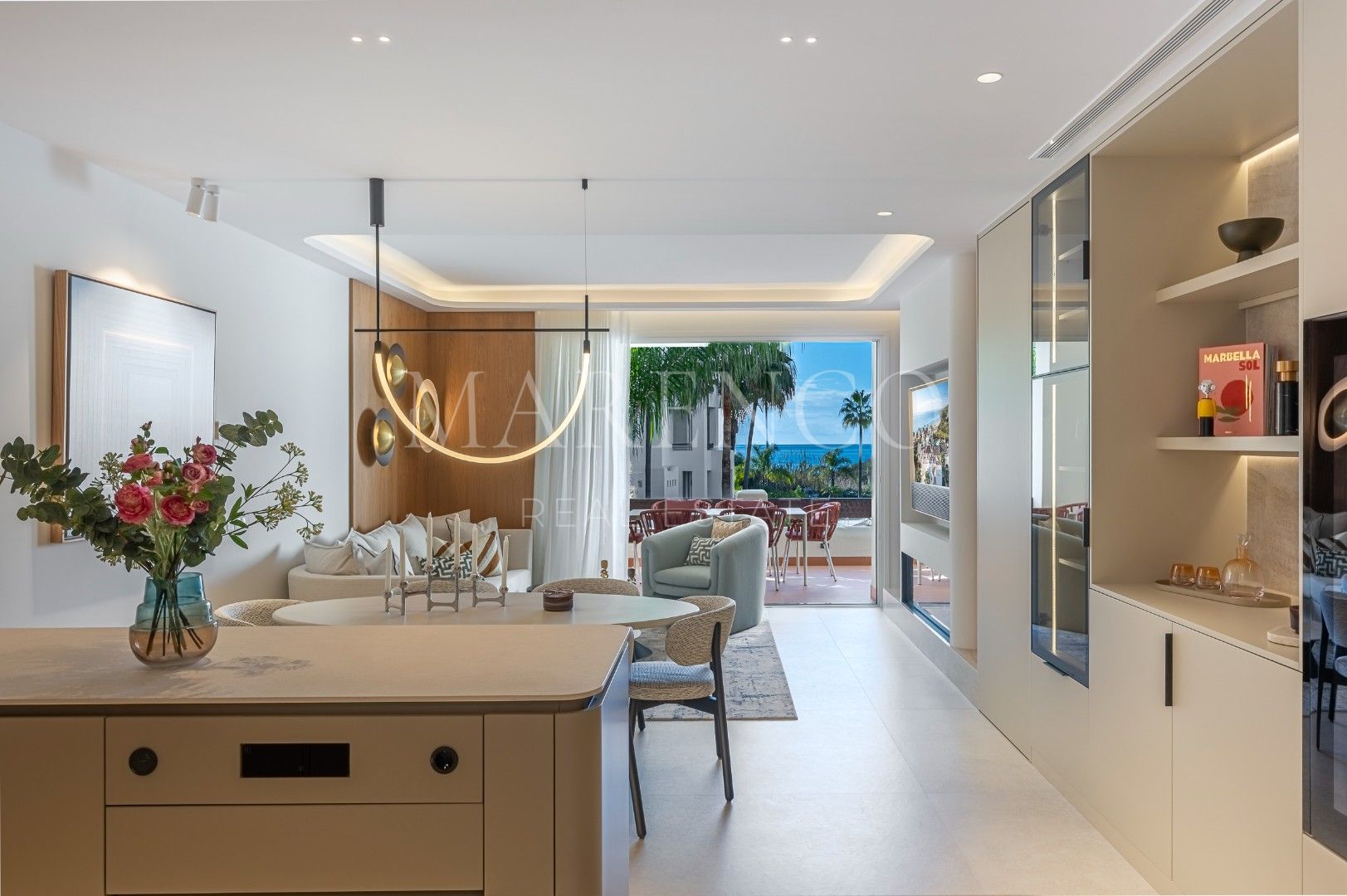 De woning beschikt over een ruime en elegante indeling, ontworpen om het natuurlijke licht en de verbinding met buiten maximaal te benutten. Ze beschikt over meerdere slaapkamers en suite, royale woon- en eetruimtes en een volledig uitgeruste keuken die op functionele wijze in het geheel is geïntegreerd. De grote terrassen maken het mogelijk verschillende sferen te creëren, van ontspanningsruimtes tot plekken om in gezelschap te genieten, altijd met de zee als decor.
