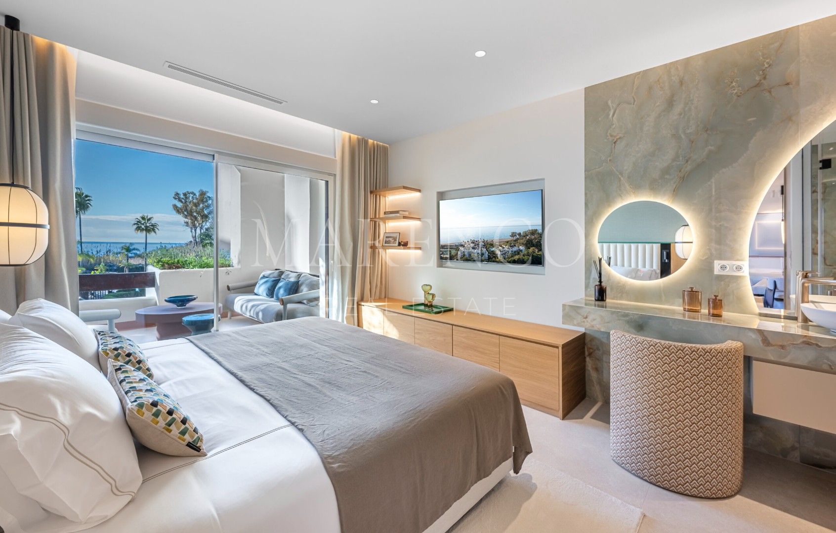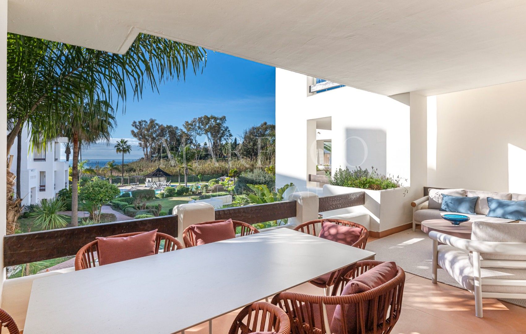 Gelegen in een van de meest exclusieve wooncomplexen aan de Costa del Sol, herdefinieert dit indrukwekkende luxe appartement in Bahía del Velerín, Estepona het concept van wonen aan zee. Met directe toegang tot het strand en omgeven door weelderige tropische tuinen nodigt deze woning uit tot een levensstijl waarin het geluid van de Middellandse Zee en absolute privacy centraal staan. Stel je voor dat je elke ochtend wakker wordt met open zeezicht en de dag afsluit met unieke zonsondergangen vanaf je eigen terras.