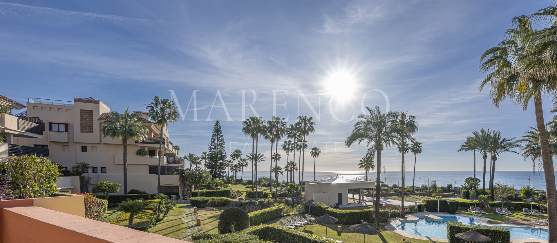 Word elke ochtend wakker met de mediterrane bries en het geluid van de zee op slechts een paar stappen afstand. Dit indrukwekkend luxe appartement in Costalita, Estepona biedt een perfecte combinatie van eigentijdse elegantie en een bevoorrechte ligging aan het strand, waar natuurlijk licht en open uitzichten zorgen voor een serene en verfijnde sfeer. Een woning ontworpen voor wie wil genieten van de meest exclusieve levensstijl aan de Costa del Sol.