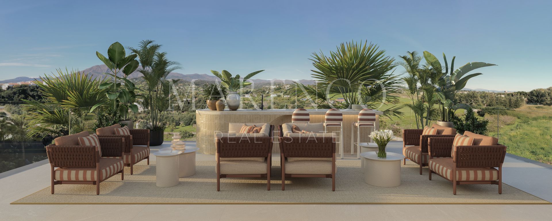 Het absolute hoogtepunt van dit indrukwekkend luxe penthouse in Estepona is de rooftopverdieping. Deze is ontworpen voor gebruik het hele jaar door en beschikt over een ruim solarium van bijna 74 m², een overdekte lounge, een extra gastentoilet en een privé jacuzzi, ideaal om te ontspannen of gasten te ontvangen met panoramisch uitzicht.