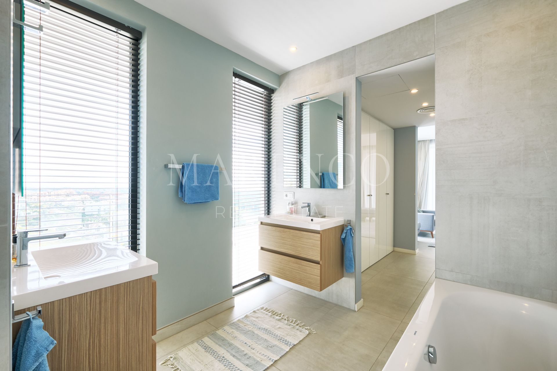 Deze woning, orientation zuidoosten, heeft de volgende faciliteiten: privé terras, dicht bij winkels, dicht bij de stad, dicht bij de haven, dicht bij scholen, uitzicht op zee, uitzicht op de bergen, overdekt terras, elektrische rolluiken, inbouwkasten, uitzicht op de tuin, uitzicht op het zwembad, panoramisch uitzicht, bergzijde, dicht bij voorzieningen, vervoer dichtbij, airconditioning, vloerverwarming (gedeeltelijk), inbouwkeuken, open haard, bij de zee/het strand, dicht bij golfclub, niet overdekt terras, kelder, glazen deuren, opslagruimte, open keuken, alarm, balkon, solarium, uitstekende staat, eetkamer, barbecue, beveiliging 24/7, uitzicht op het meer en gastentoilet.