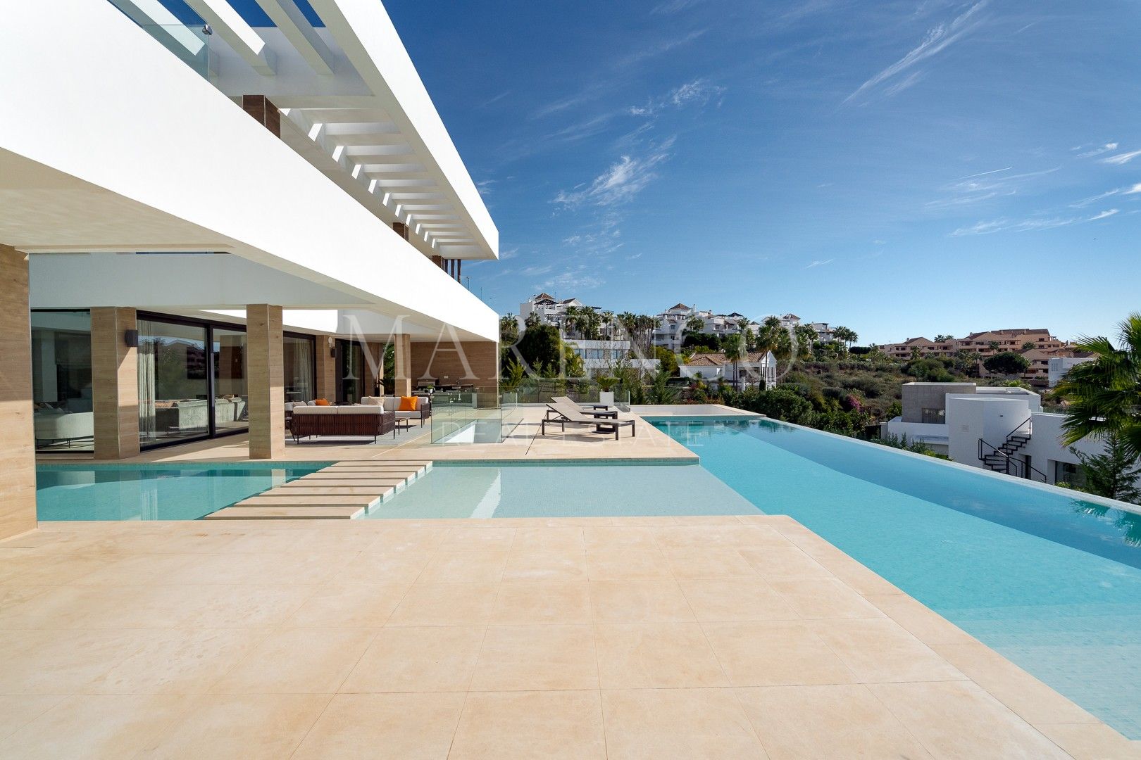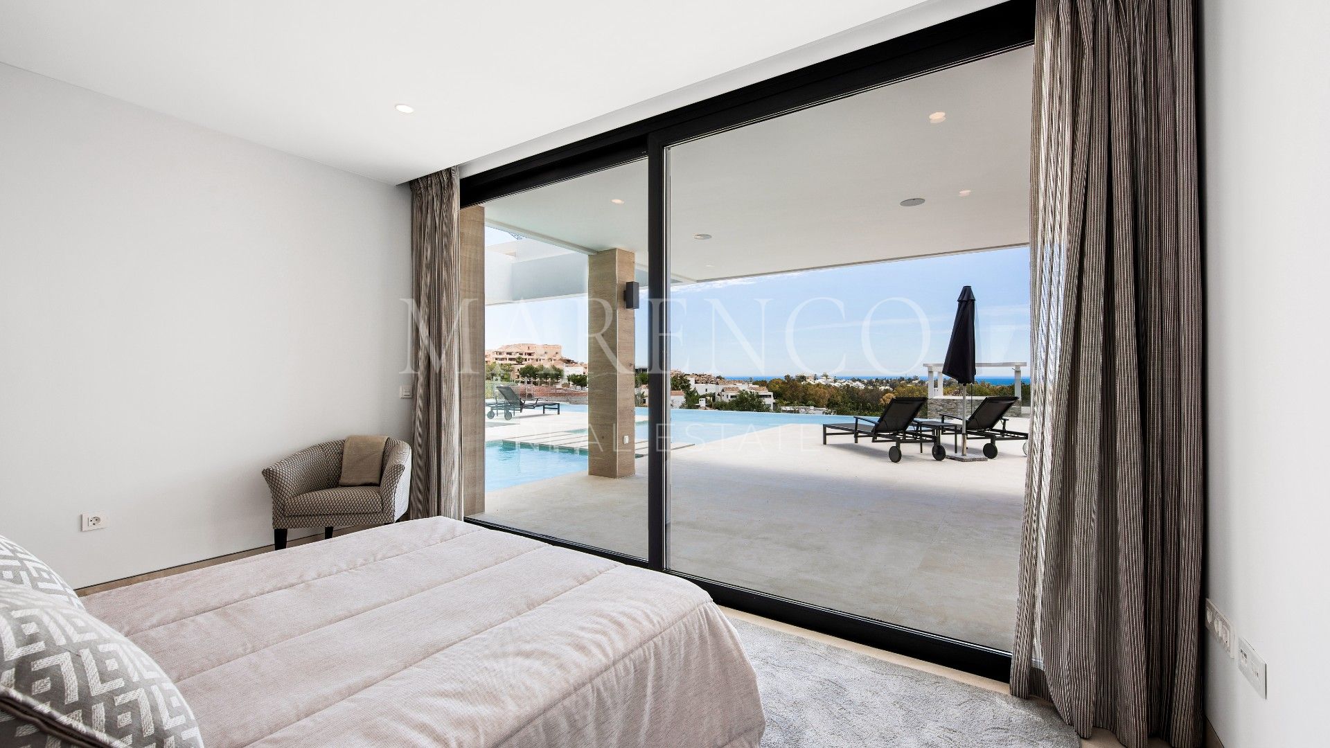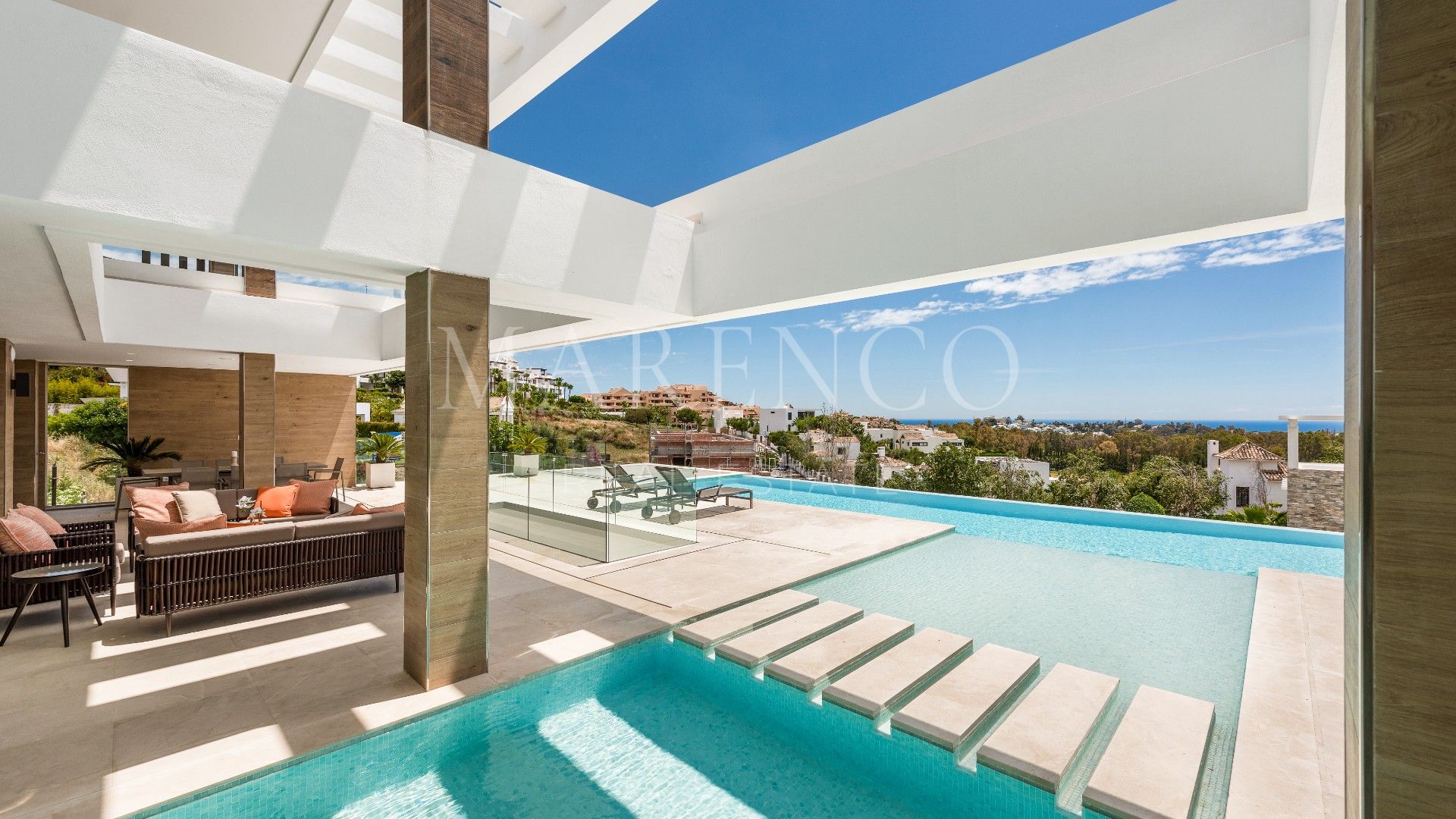 ELEGANTE MODERNE VILLA MET SCHITTEREND ZEEZICHT IN LA ALQUERÍA, BENAHAVÍS, EN DICHTBIJ MARBELLA EN PUERTO BANÚS.