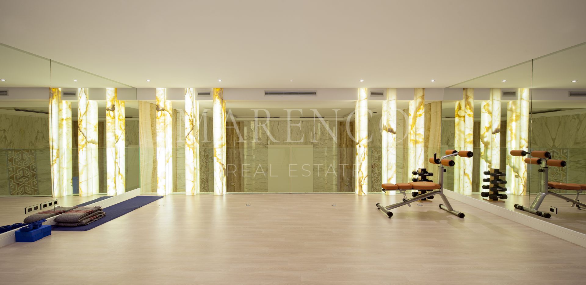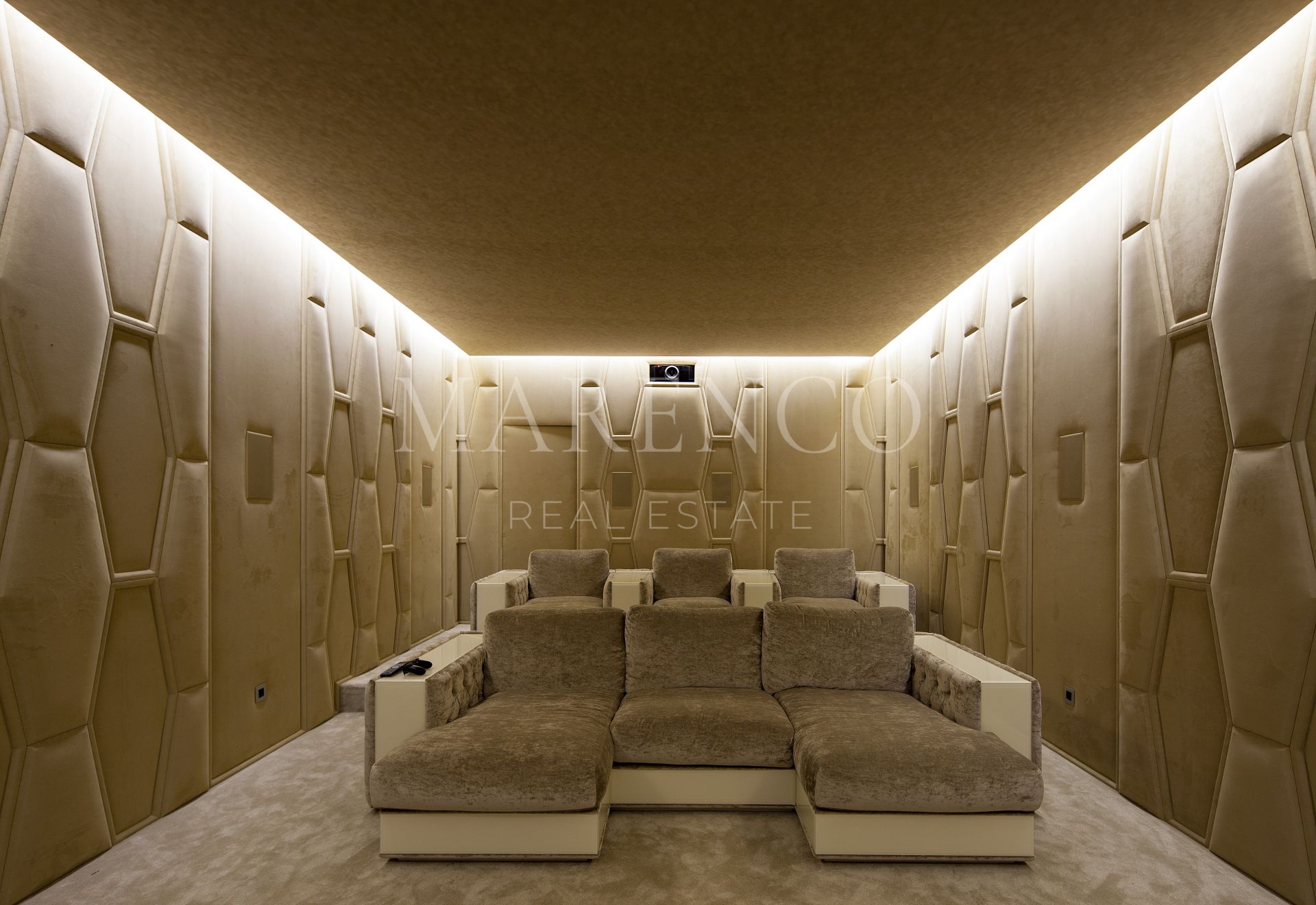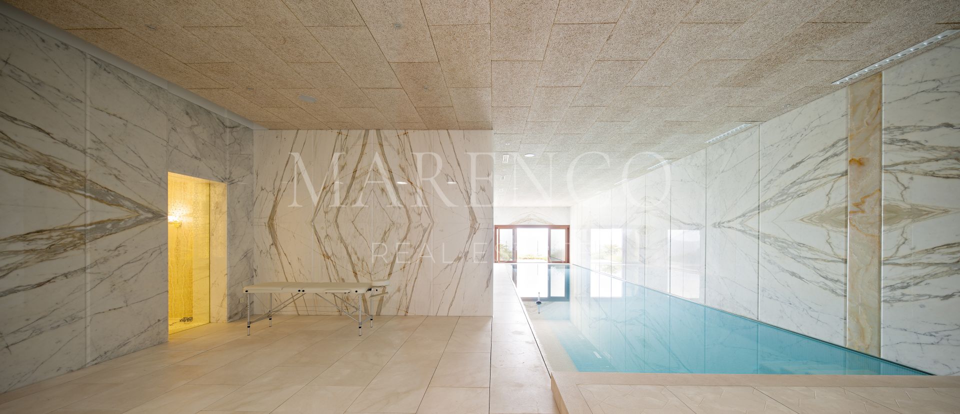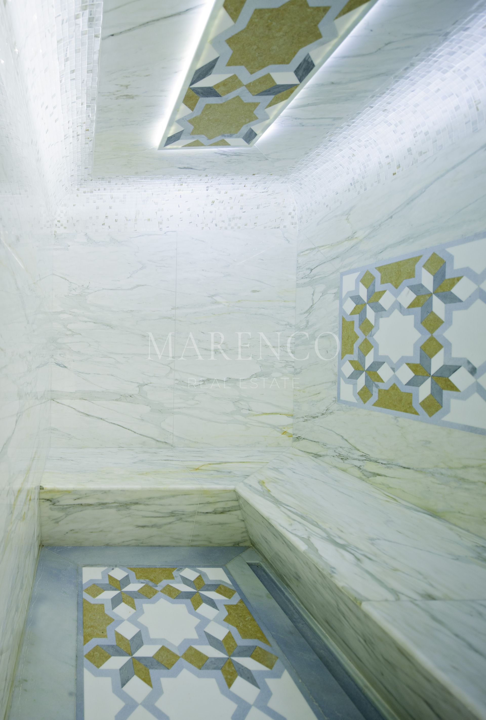 Deze woning, orientation zuiden, heeft de volgende faciliteiten: privé terras, complete keuken, dicht bij de stad, separaat appartement, uitzicht op zee, uitzicht over land, appartement voor gasten, uitzicht op de bergen, overdekt zwembad, kantoor, verwarmd zwembad, 24 uur per dag service, beveiligde woonwijk, lift, panoramisch uitzicht, bergzijde, bioscoop, vloerverwarming (gedeeltelijk), wijnkelder, open haard, jacuzzi, sauna, dicht bij golfclub, fitnessruimte, spa ruimte, turks bad (hammam), uitstekende staat, eetkamer, beveiliging 24/7 en gastentoilet.