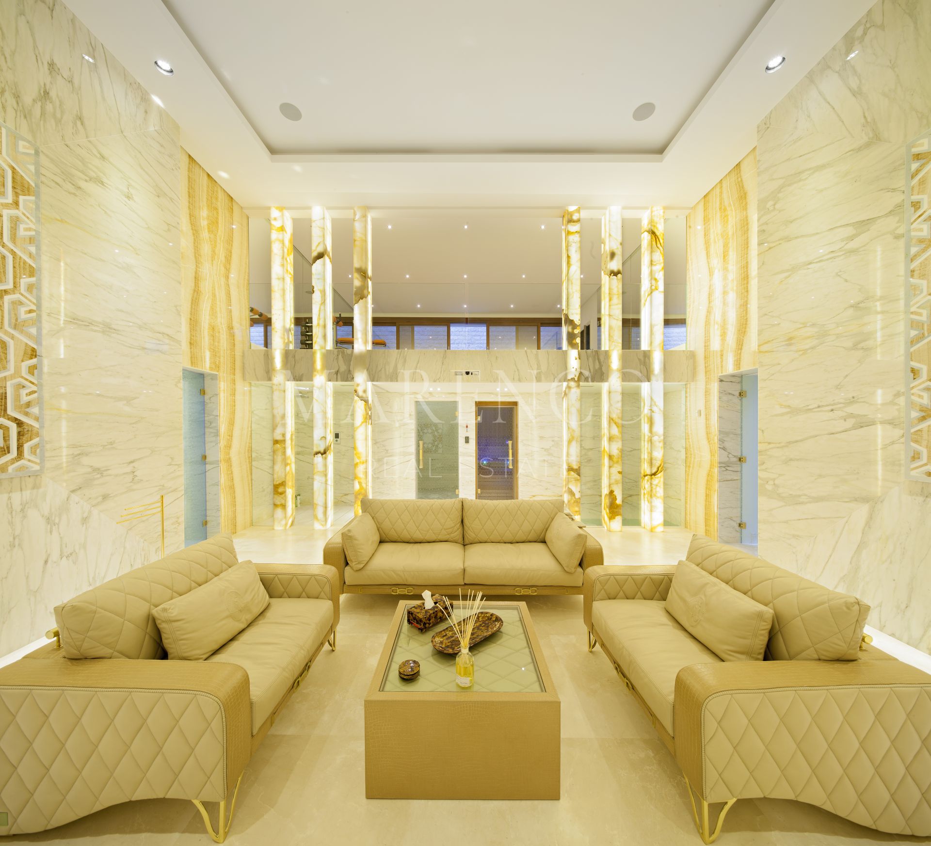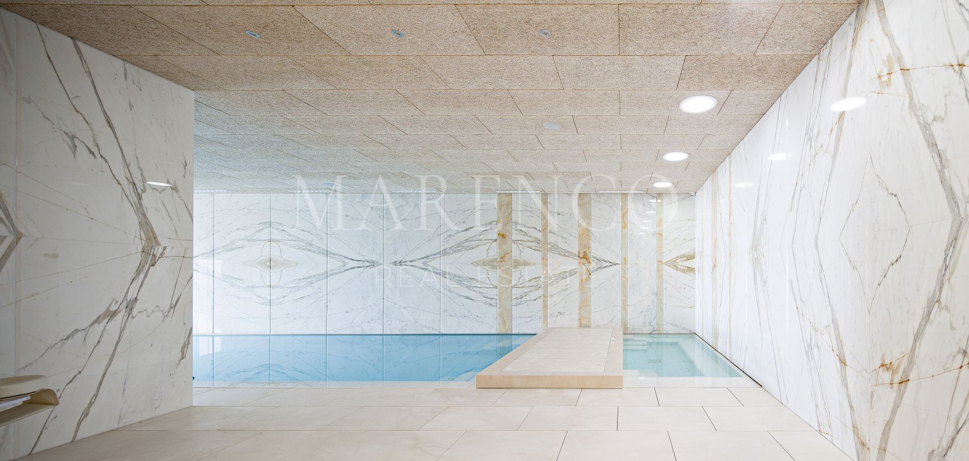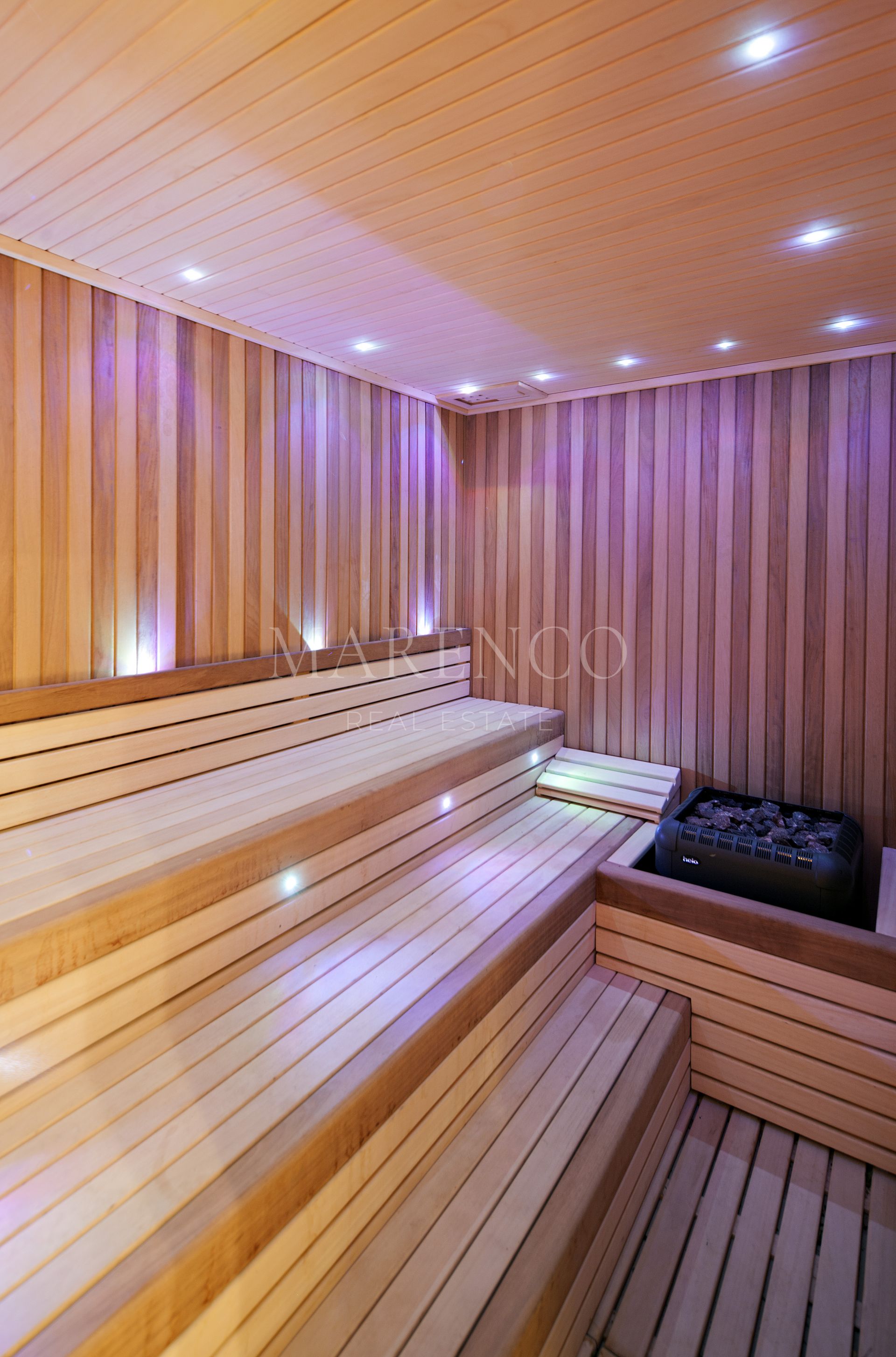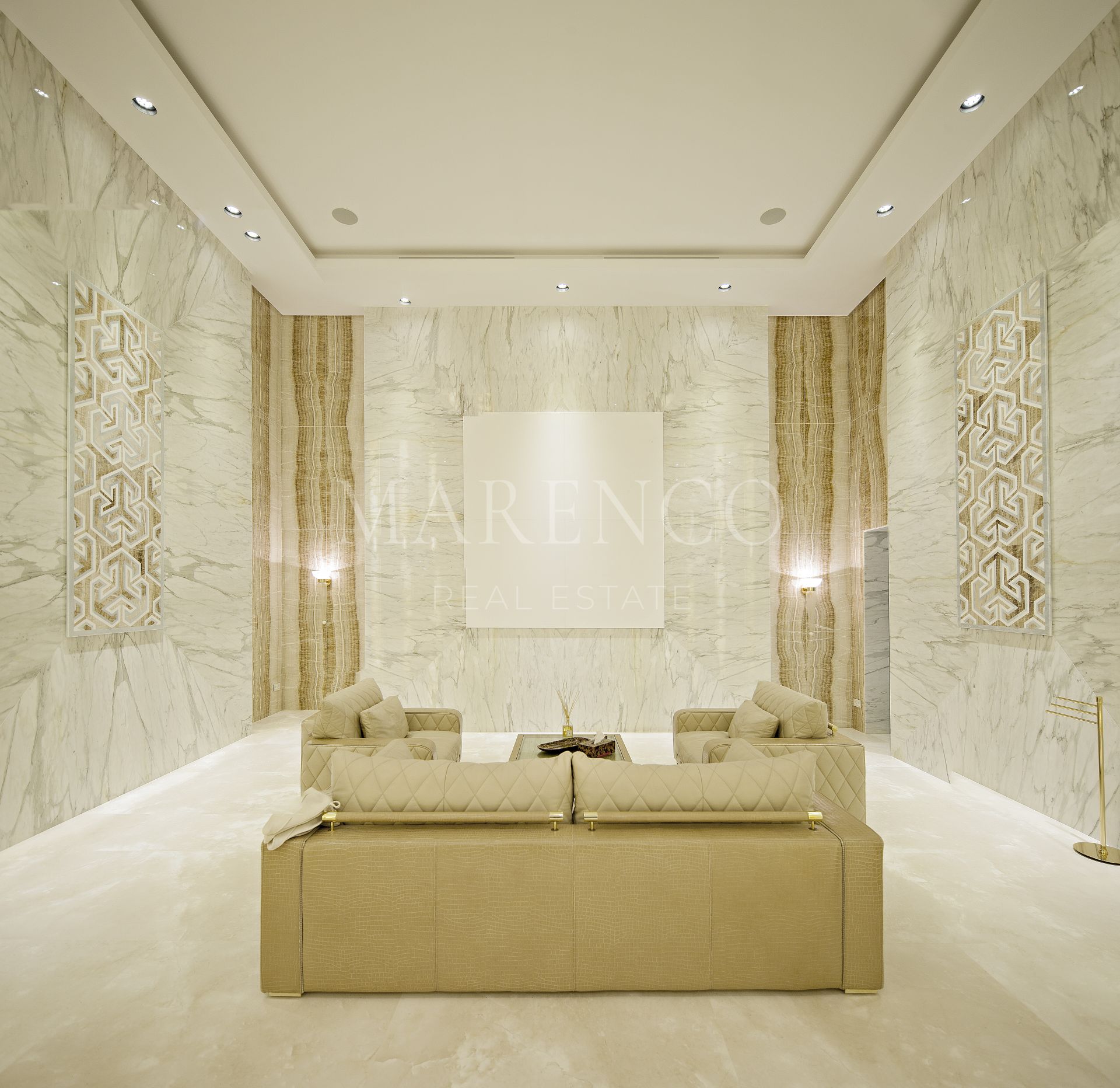 Deze woning, orientation zuiden, heeft de volgende faciliteiten: privé terras, complete keuken, dicht bij de stad, separaat appartement, uitzicht op zee, uitzicht over land, appartement voor gasten, uitzicht op de bergen, overdekt zwembad, kantoor, verwarmd zwembad, 24 uur per dag service, beveiligde woonwijk, lift, panoramisch uitzicht, bergzijde, bioscoop, vloerverwarming (gedeeltelijk), wijnkelder, open haard, jacuzzi, sauna, dicht bij golfclub, fitnessruimte, spa ruimte, turks bad (hammam), uitstekende staat, eetkamer, beveiliging 24/7 en gastentoilet.