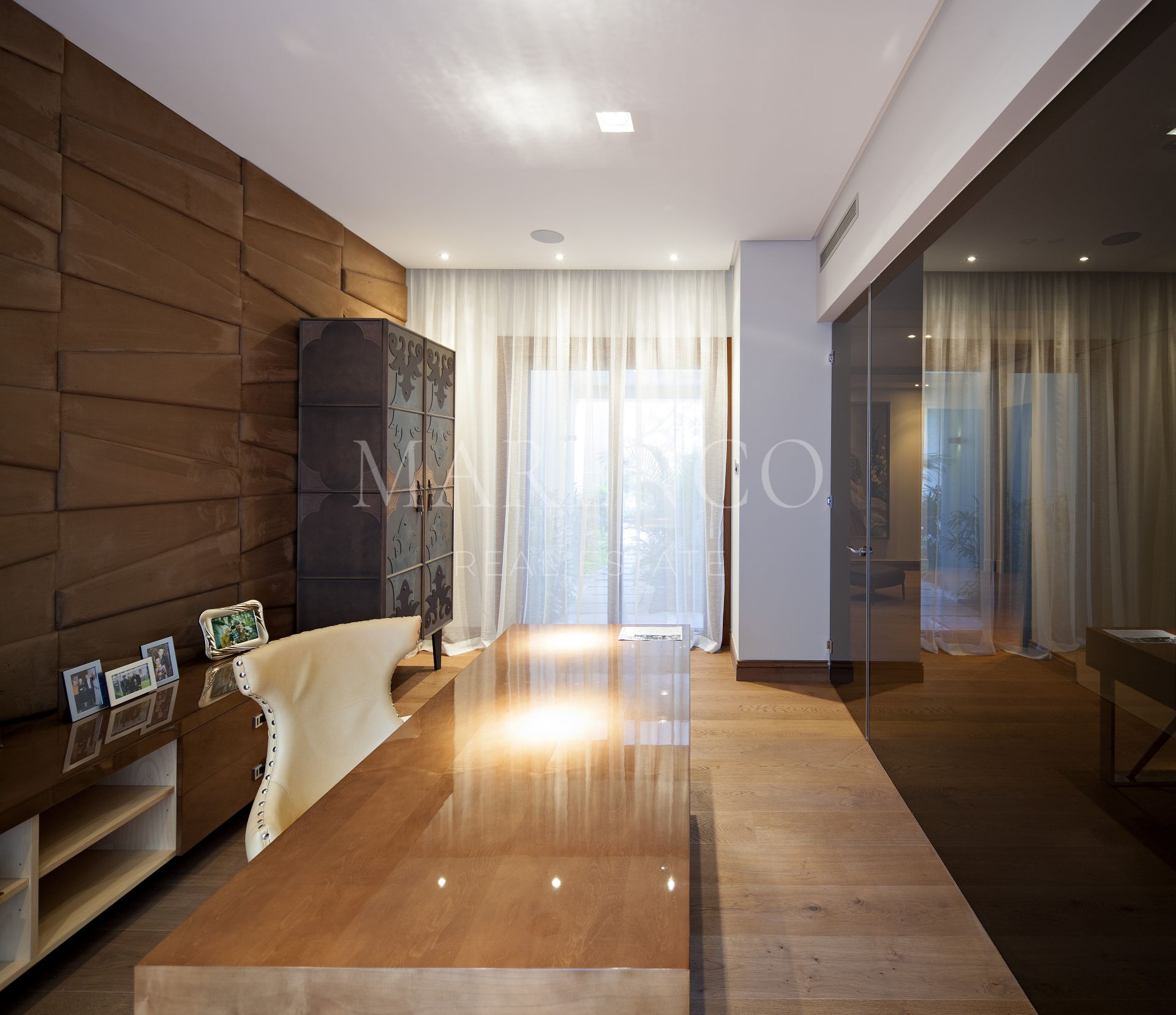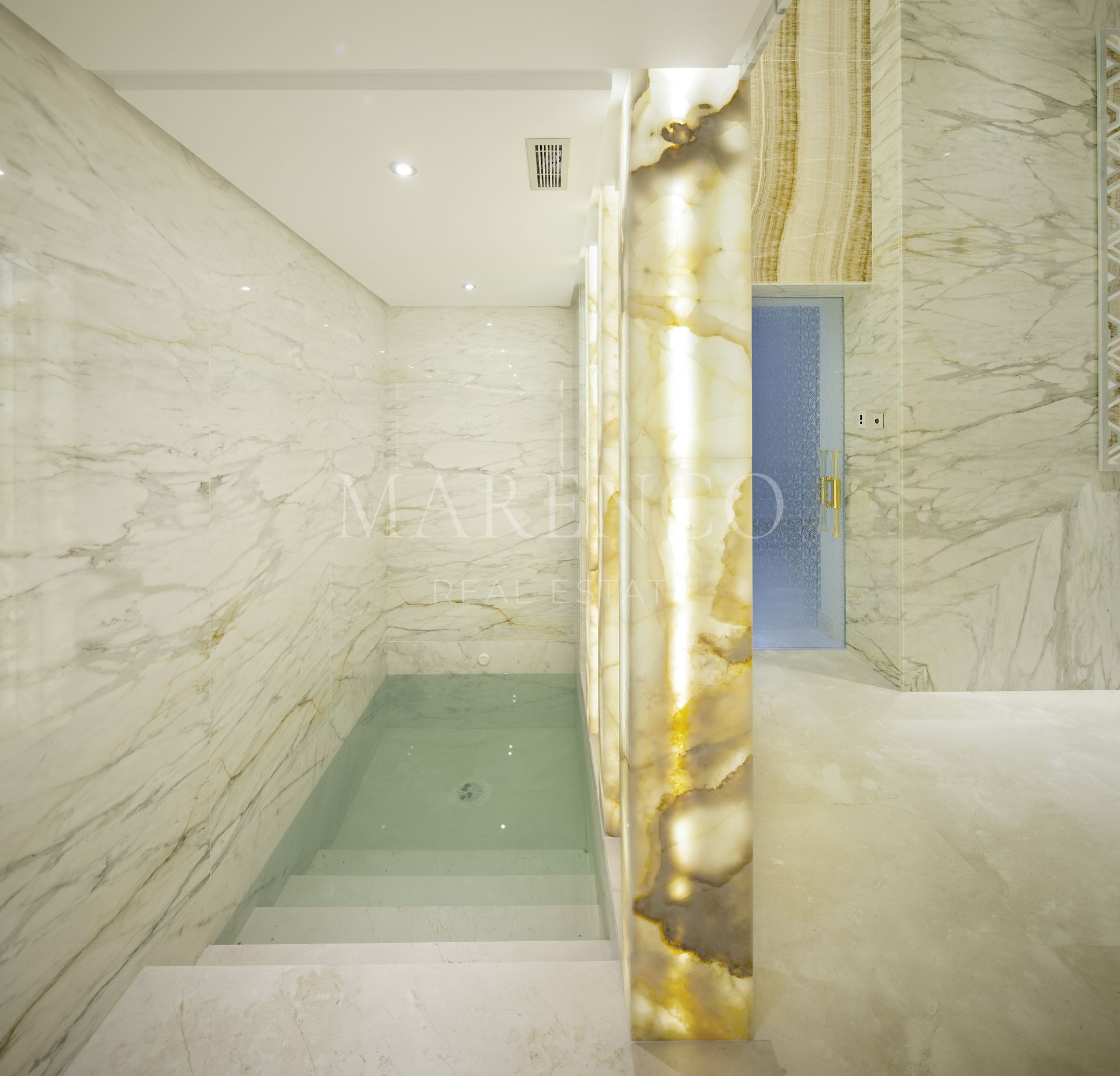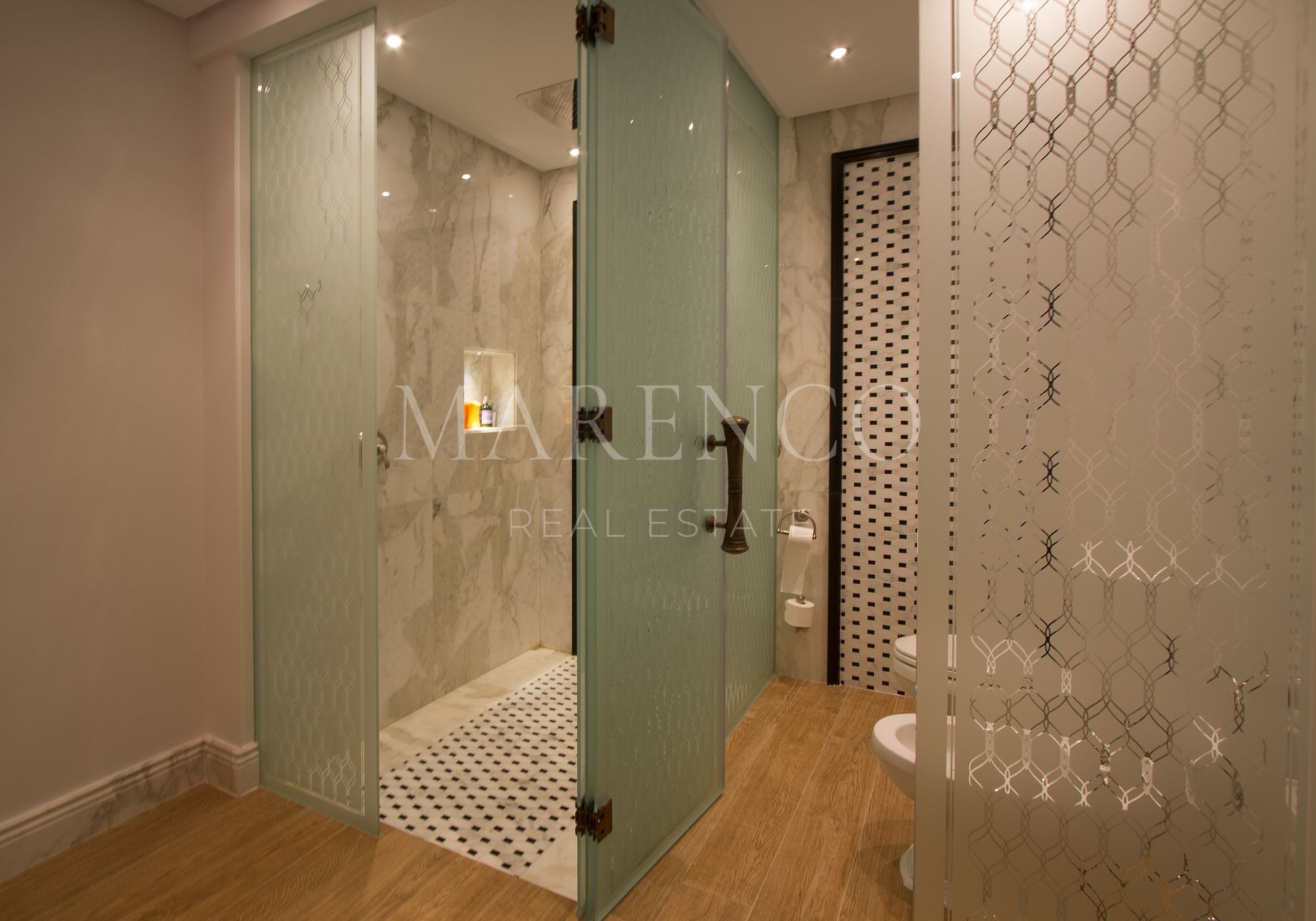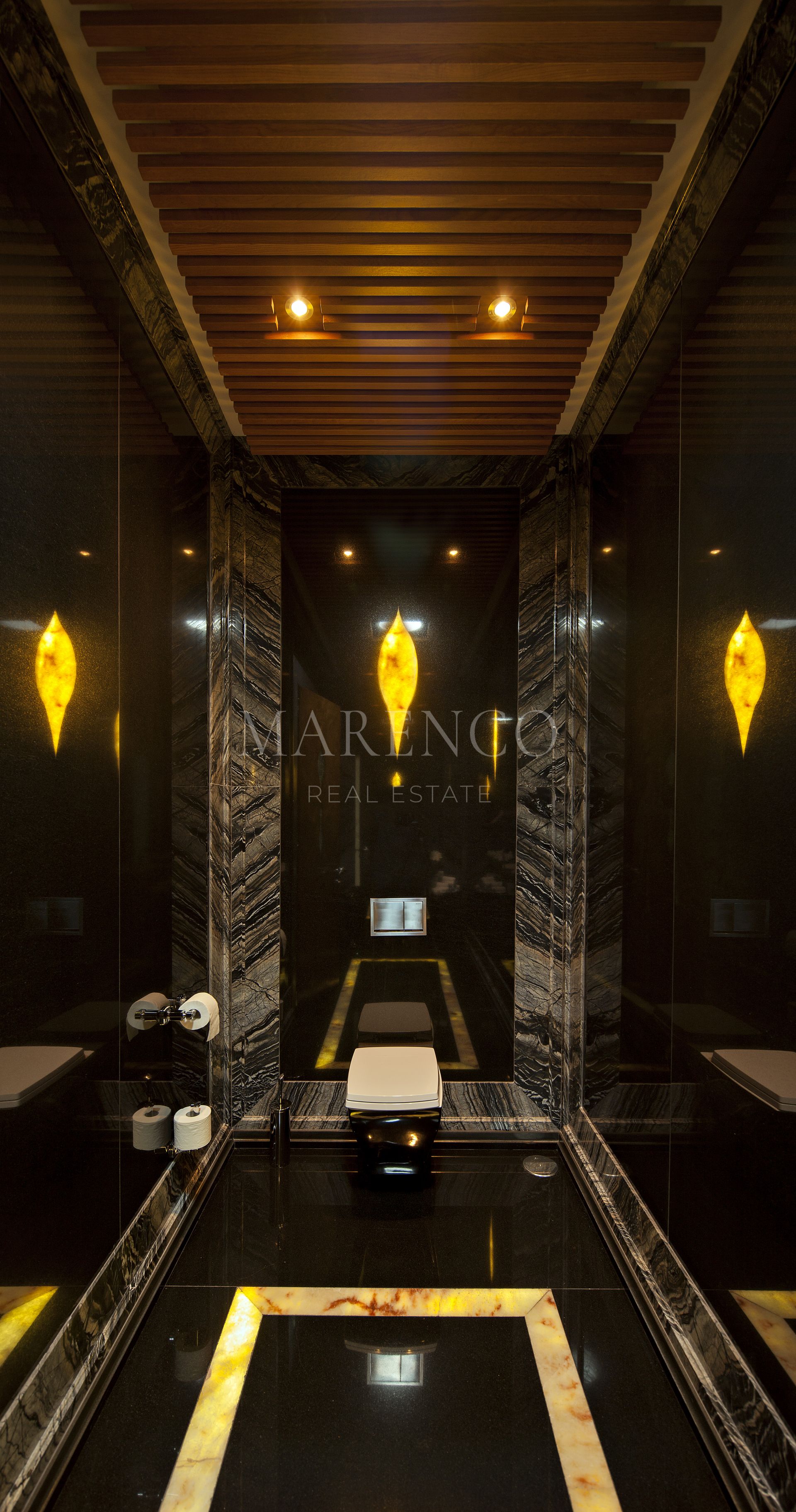 Deze woning, orientation zuiden, heeft de volgende faciliteiten: privé terras, complete keuken, dicht bij de stad, separaat appartement, uitzicht op zee, uitzicht over land, appartement voor gasten, uitzicht op de bergen, overdekt zwembad, kantoor, verwarmd zwembad, 24 uur per dag service, beveiligde woonwijk, lift, panoramisch uitzicht, bergzijde, bioscoop, vloerverwarming (gedeeltelijk), wijnkelder, open haard, jacuzzi, sauna, dicht bij golfclub, fitnessruimte, spa ruimte, turks bad (hammam), uitstekende staat, eetkamer, beveiliging 24/7 en gastentoilet.