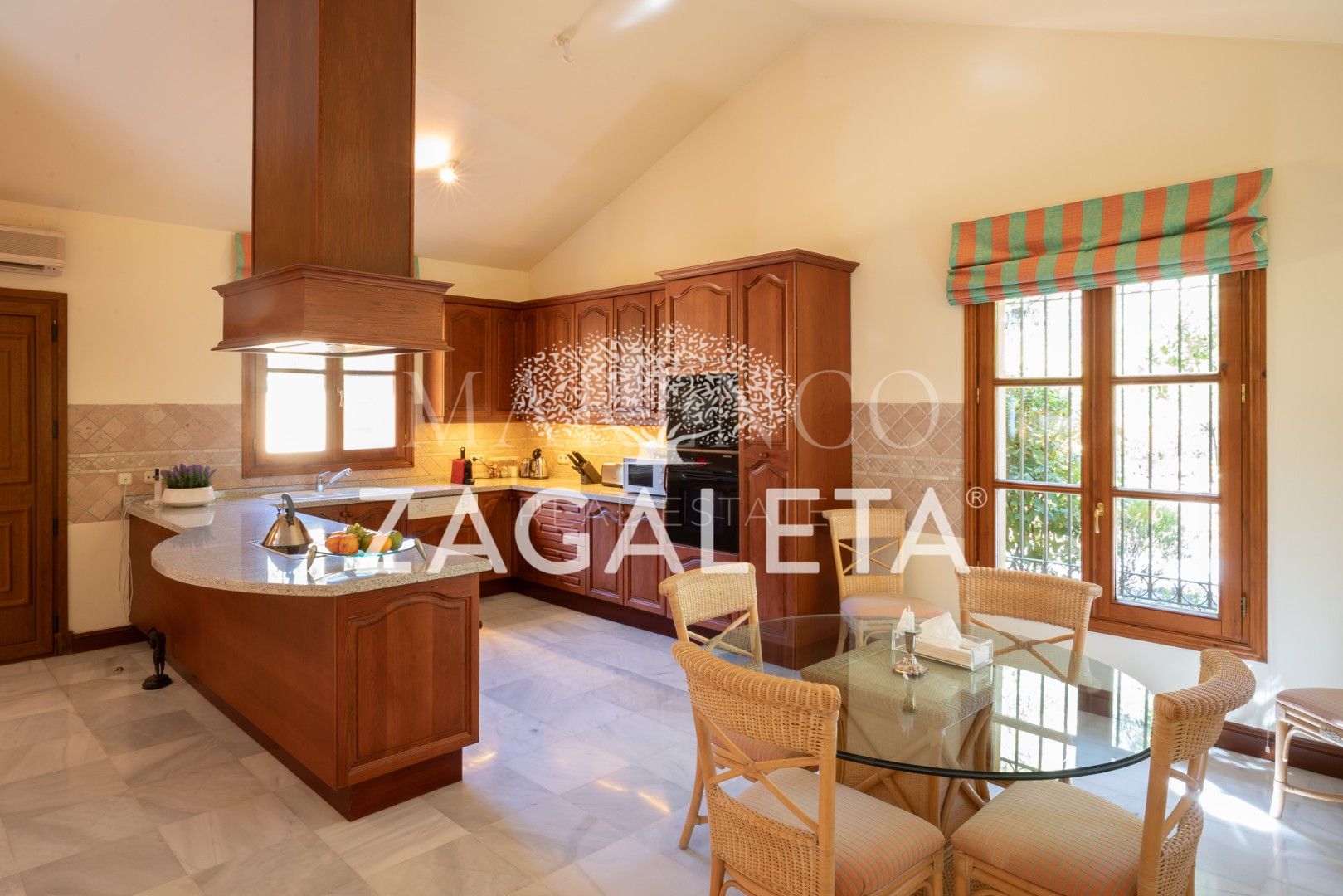Villa Siena is geïnspireerd op de traditionele Andalusische stijl en heeft een architectuur die elegantie en comfort combineert. Binnenin vindt u terracotta vloeren, houten kozijnen en smeedijzeren balustrades, details die het huis een authentiek en gezellig karakter geven. De begane grond beschikt over een ruime woonkamer met een houtgestookte open haard, ideaal om familietijd door te brengen in een warme en ontspannen sfeer. Aangrenzend aan de woonkamer bevindt zich een grote, volledig uitgeruste woonkeuken, die een ideale ruimte biedt voor familiemaaltijden.
