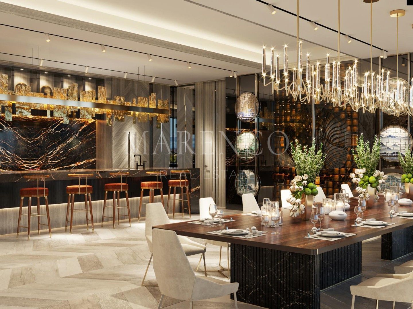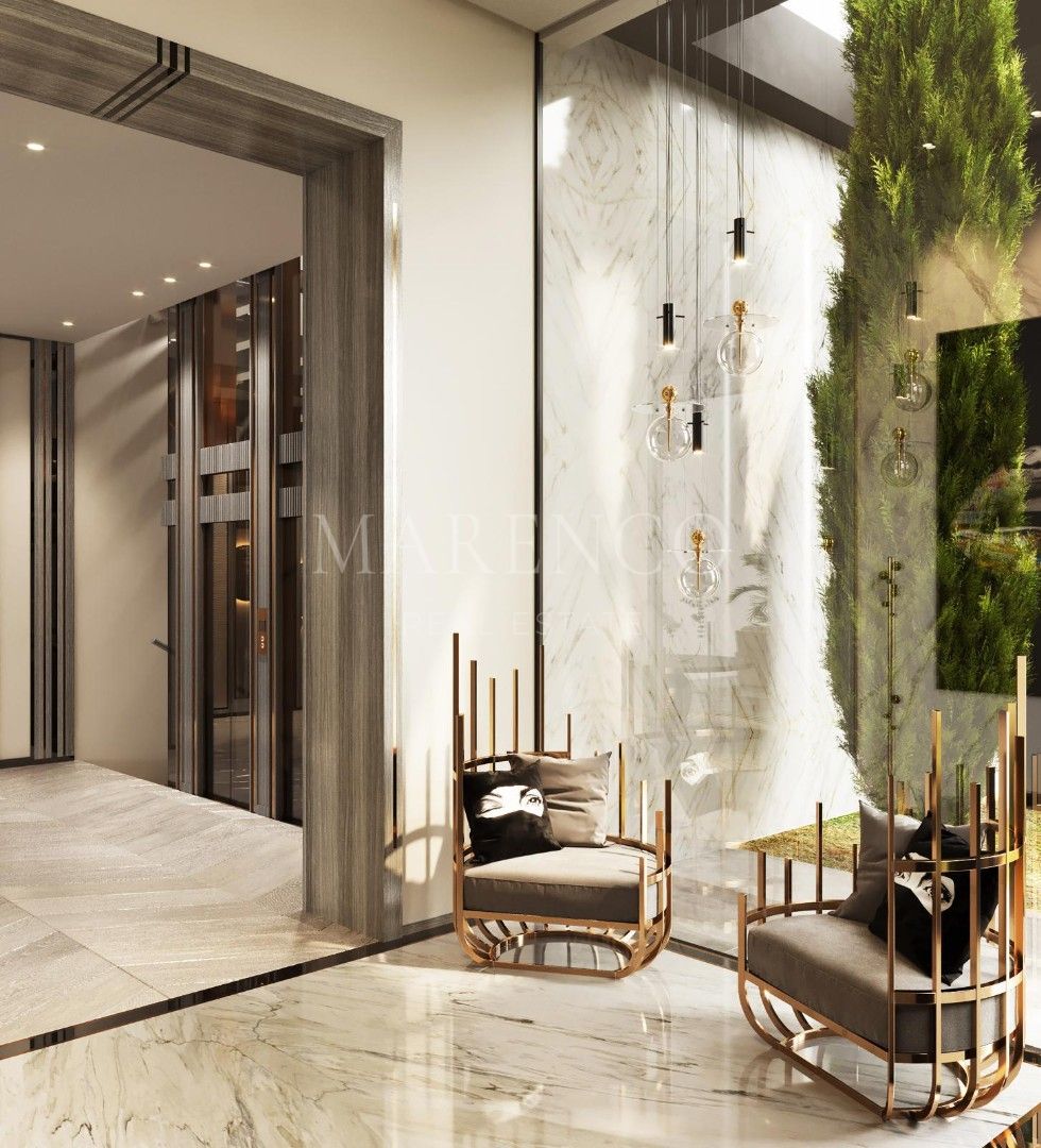 Deze woning heeft de volgende faciliteiten: privé terras, glazen deuren, fitnessruimte, airconditioning, solarium, 24 uur per dag service, uitzicht op de bergen, sauna en panoramisch uitzicht.