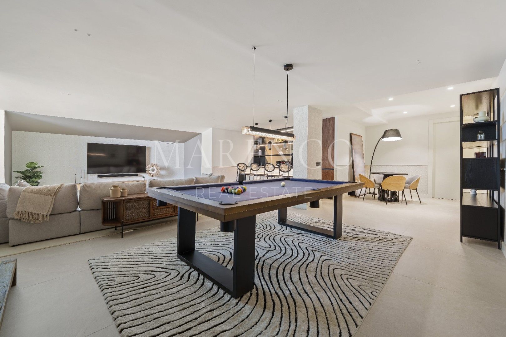Met 837 m² bebouwde oppervlakte en een perceel van 1.573 m², beschikt deze luxe villa over 5 slaapkamers, elk met een eigen badkamer en suite. Het open ontwerp verbindt de woonkamer, eetkamer en keuken perfect, waardoor er een naadloze overgang is naar de buitenterrassen dankzij de grote schuifdeuren. De hoofdslaapkamer, met een designer badkamer en suite, bevat een vrijstaande badkuip en een dubbele wastafel, allemaal met houten architecturale details die privacy bieden zonder de openheid te verliezen. De villa beschikt ook over een entertainmentruimte in de kelder, ideaal voor sociale bijeenkomsten, met een bar en een biljarttafel.