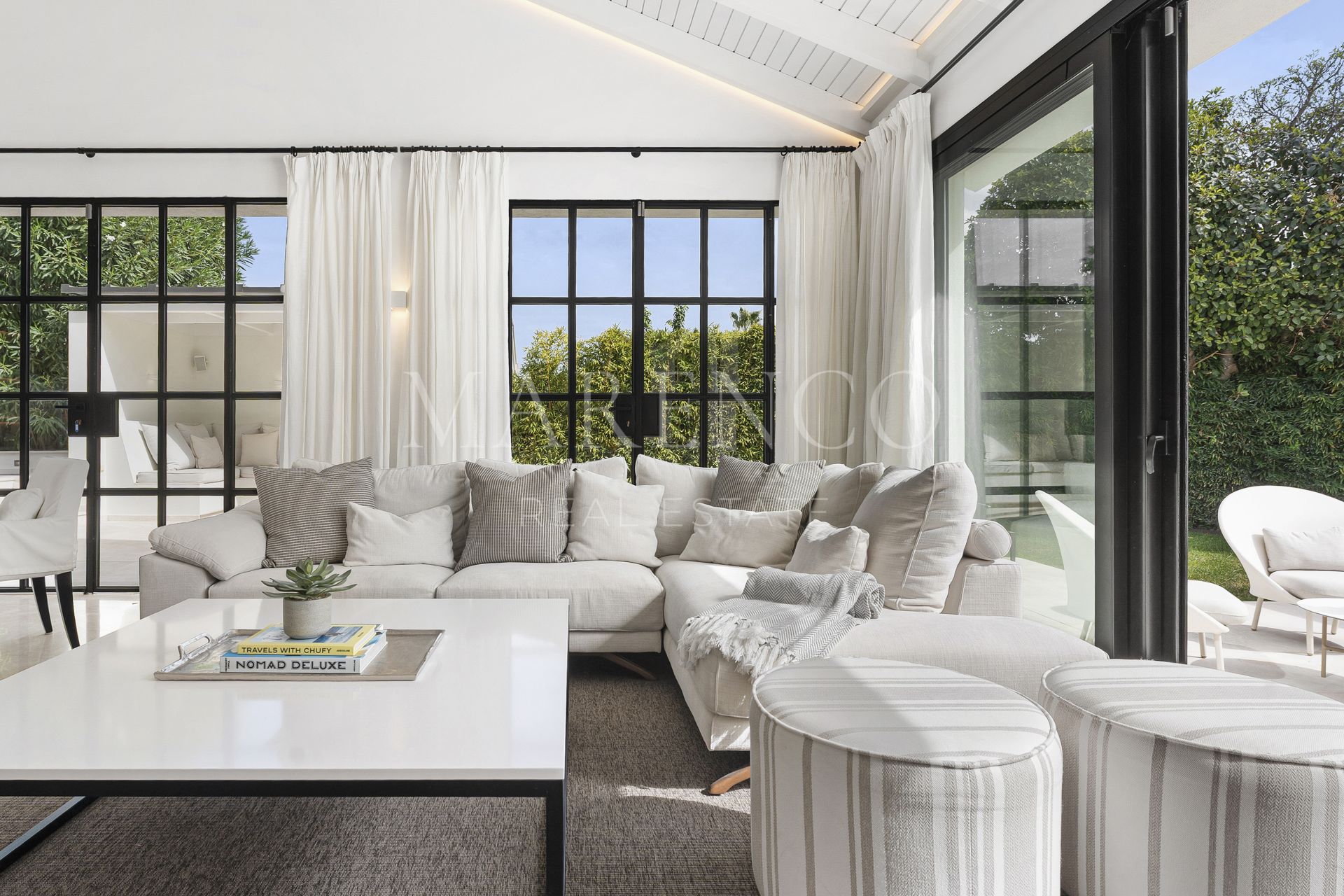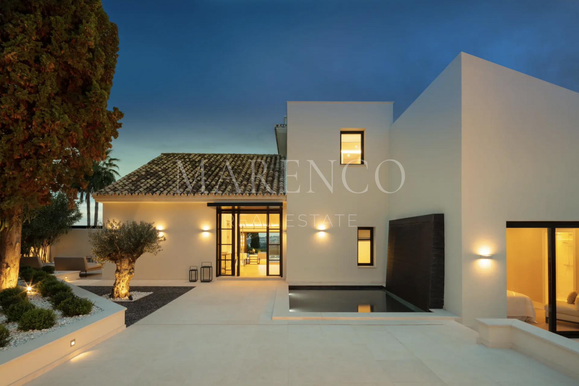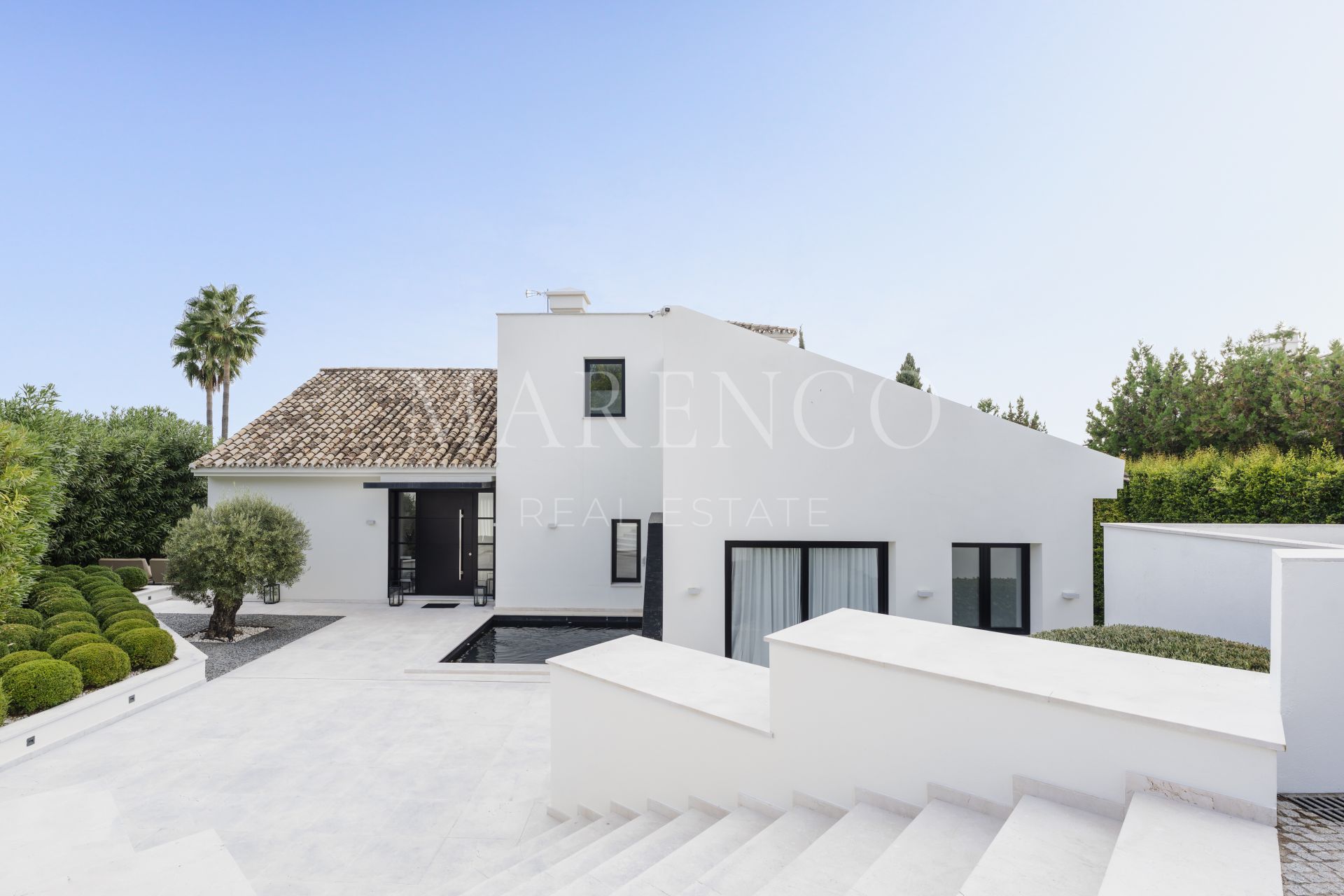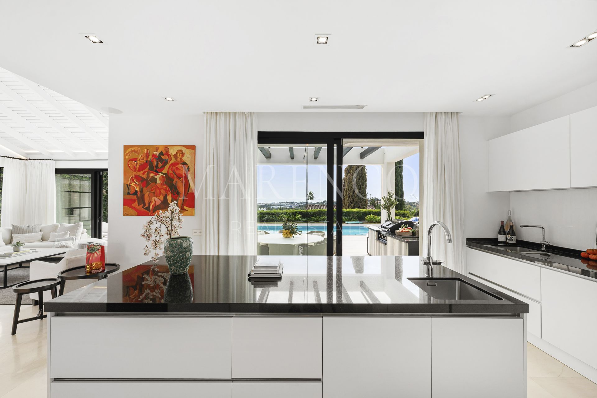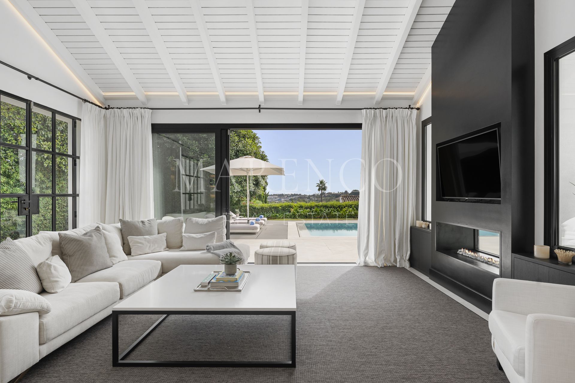 In het hart van de prestigieuze Golfvallei van Marbella combineert deze indrukwekkende villa in Los Naranjos Golf, Marbella op harmonieuze wijze Andalusische charme met modern design, licht en elegantie. Omgeven door rust en met panoramisch uitzicht op de bergen en de tuin, nodigt deze woning uit tot een ontspannen levensstijl waar elk detail is ontworpen voor comfort en schoonheid. Stel je voor dat je wakker wordt met het gezang van vogels, de deuren naar de woonkamer opent en de zachte mediterrane bries voelt terwijl de zon schittert boven je privézwembad – zo begint elke dag in Villa Begoña.