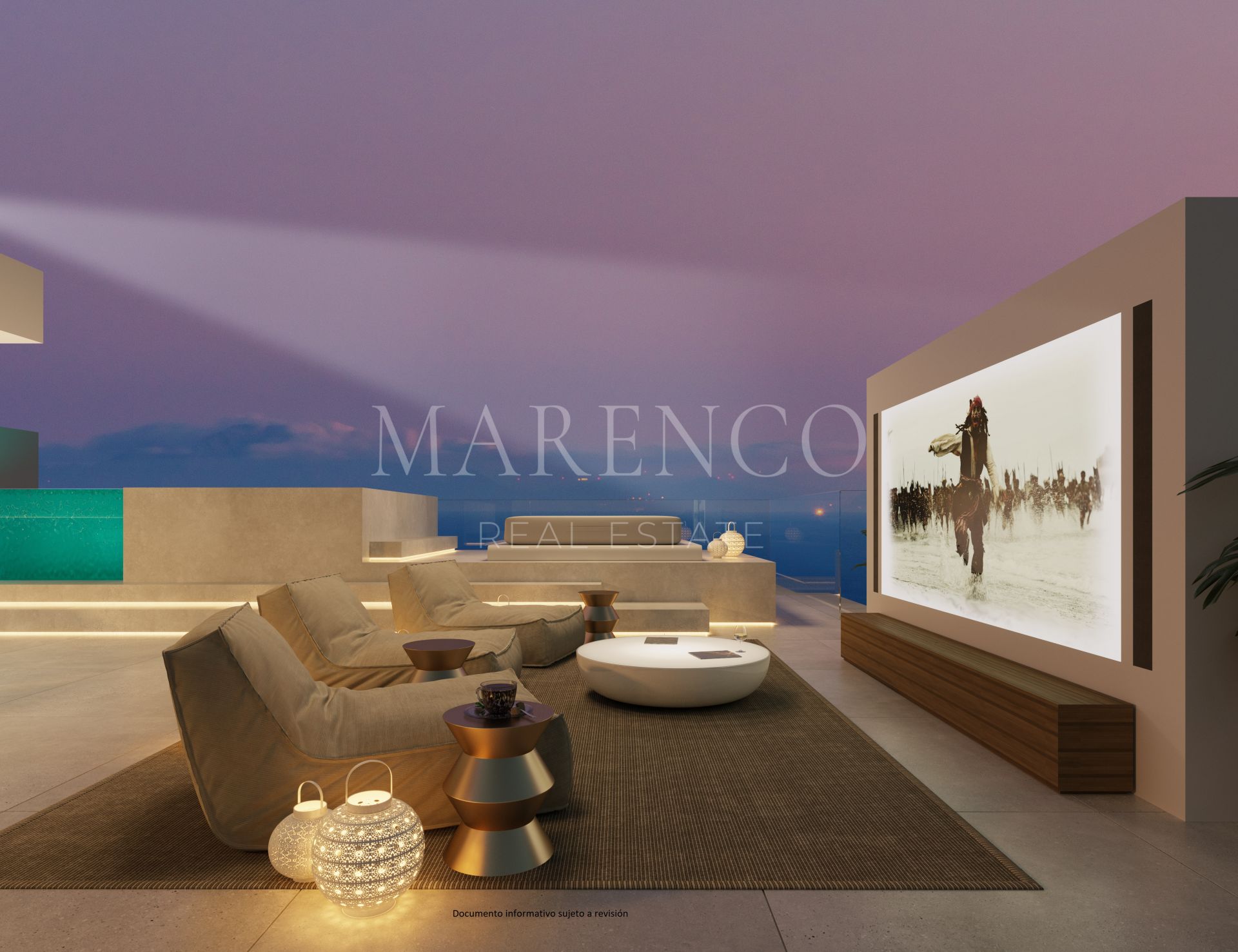 Deze woning, orientation zuiden, heeft de volgende faciliteiten: privé terras, bioscoop, dicht bij voorzieningen, dicht bij winkels, airconditioning, dicht bij de stad, dicht bij de haven, dicht bij scholen, uitzicht op zee, bij de zee/het strand, vloerverwarming (overal), dicht bij golfclub, niet overdekt terras, kelder, glazen deuren, wasruimte, solarium, overdekt terras, beveiligde woonwijk, uitstekende staat, lift, gastentoilet en panoramisch uitzicht.