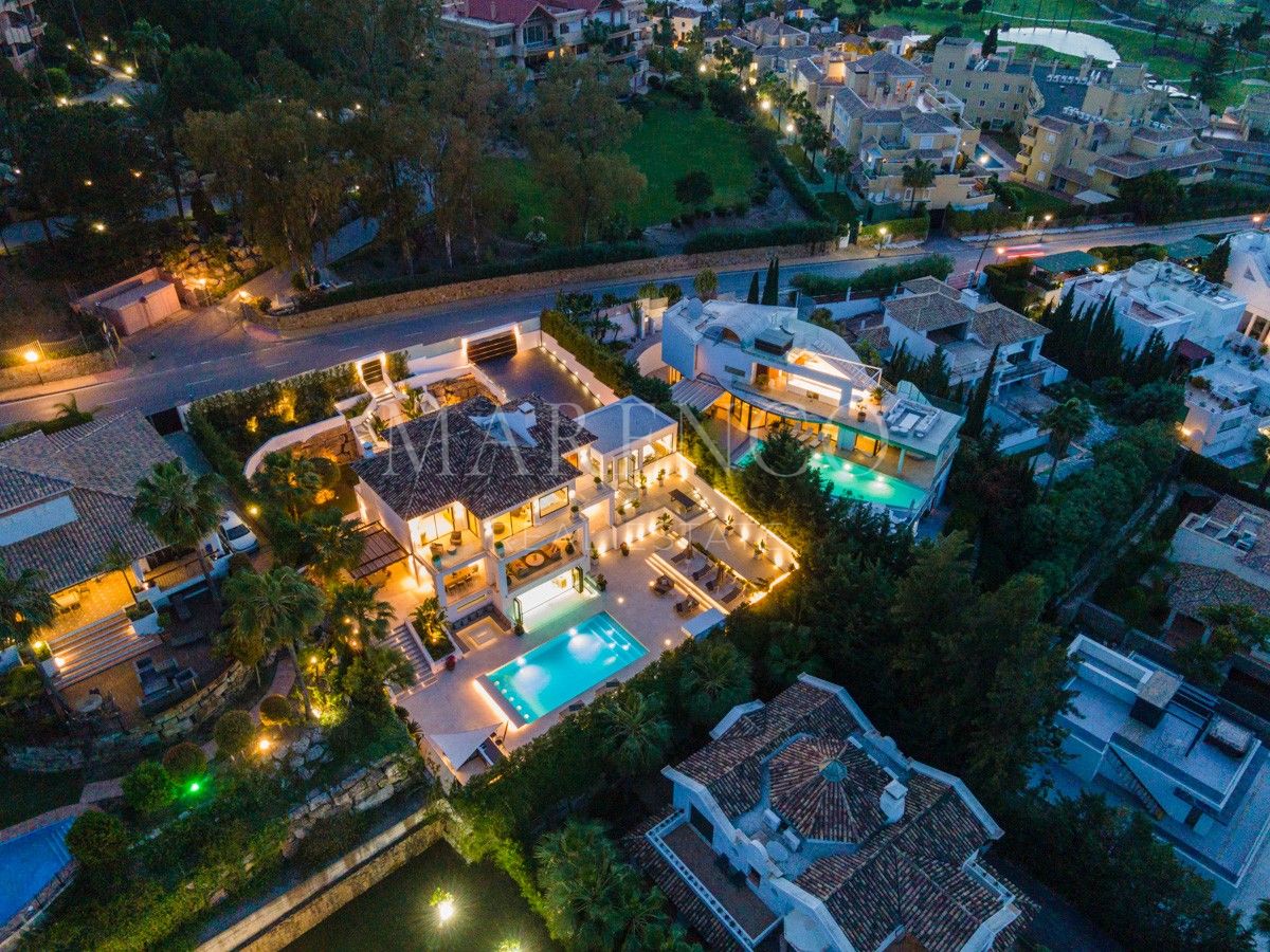 Villa te koop in Nueva Andalucia, Marbella met 5 slaapkamers, 4 badkamers en heeft zwembad (privé), garage (privé) en tuin (privé). Dimensies: 482m² Gebouwd, 1213m² verhaallijn en 150m² terras.