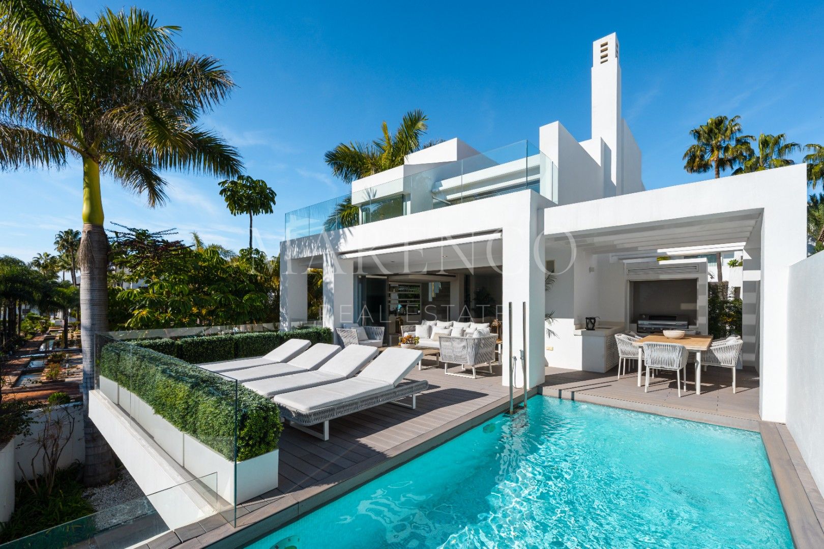 Wonen in Puente Romano betekent directe toegang tot toprestaurants, beachclubs en alle voorzieningen van de Golden Mile. Deze elegante halfvrijstaande villa in Puente Romano, Marbella Golden Mile biedt de perfecte balans tussen nabijheid en privacy.