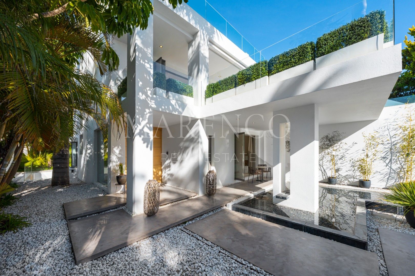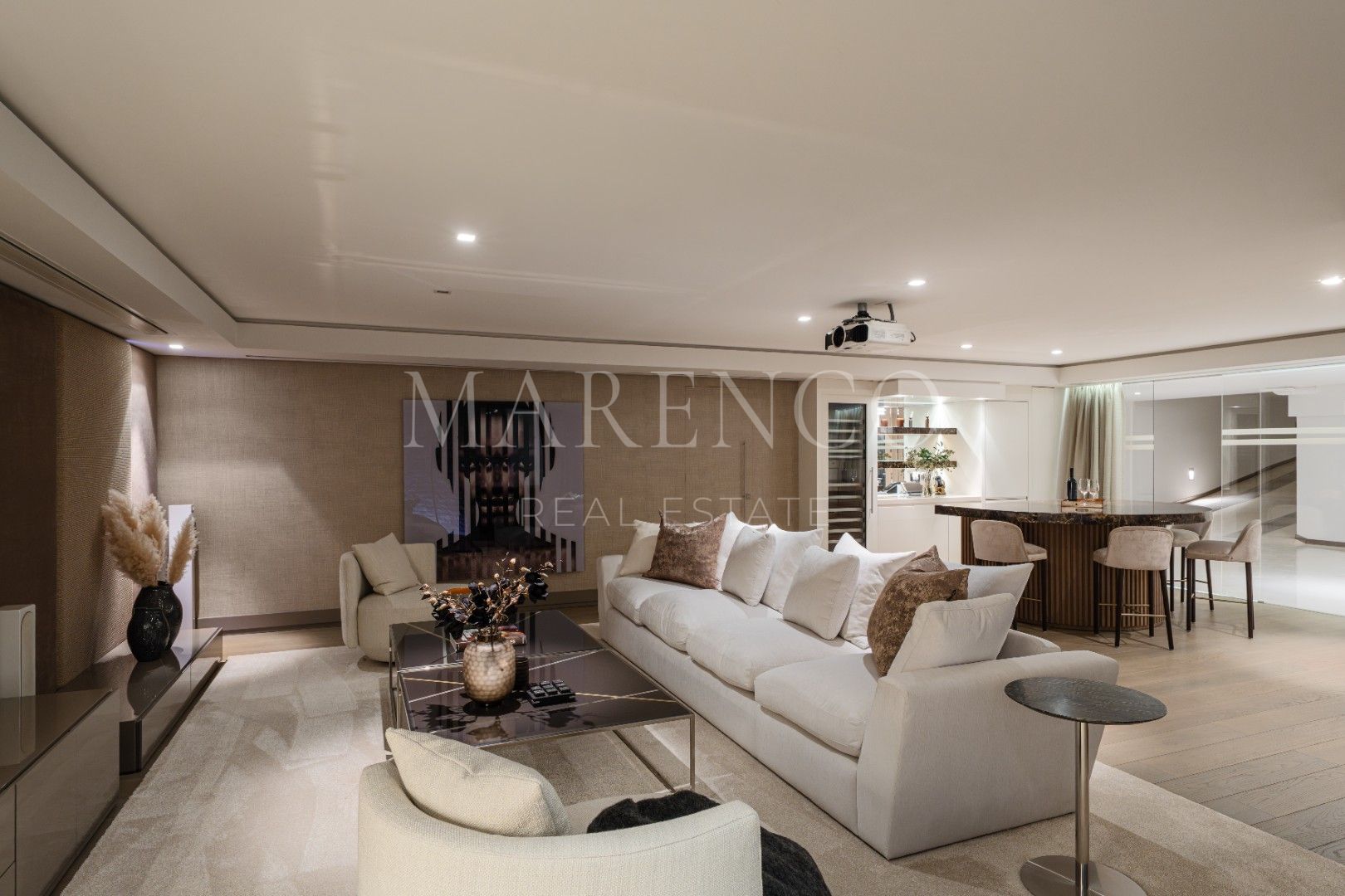 De villa onderscheidt zich door haar ontspanningsruimte op de benedenverdieping, inclusief entertainmentruimte met bar, bioscoopruimte, fitness en sauna. Het privézwembad vloeit visueel samen met de zee aan de horizon. Een privétuin en garage maken deze exclusieve woning compleet.