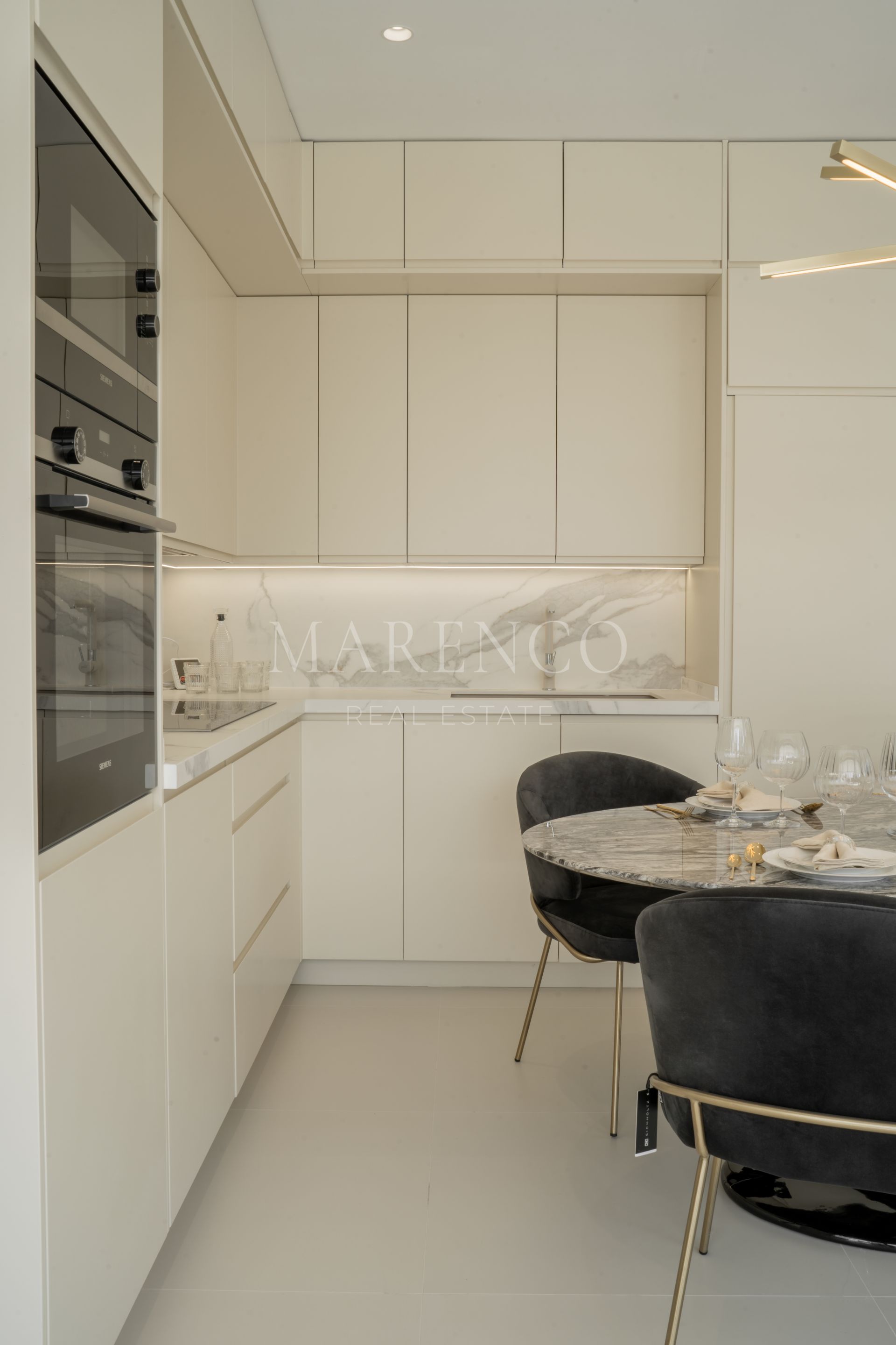 Deze open ruimte verbindt de woonkamer, de eetkamer en de keuken, waardoor er een gevoel van ruimtelijkheid ontstaat. De keuken is volledig uitgerust.