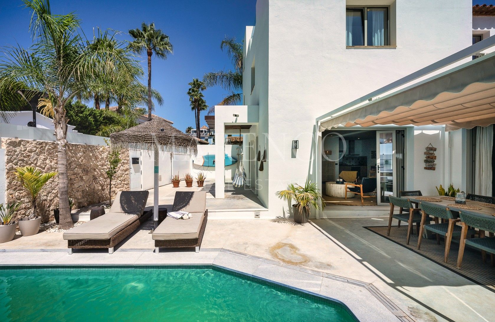 Villa te koop in San Pedro de Alcantara met 4 slaapkamers, 3 badkamers en heeft zwembad (privé), garage (privé) en tuin (privé). Dimensies: 193m² Gebouwd, 229m² verhaallijn en 41m² terras.